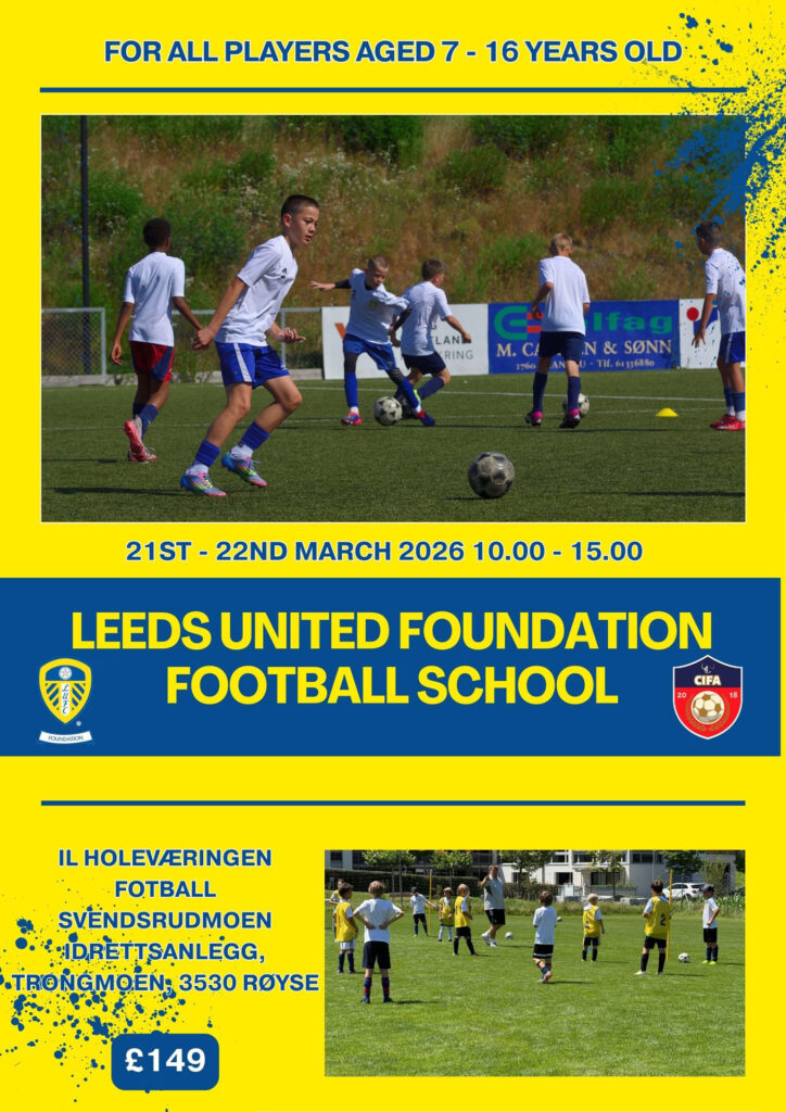 Som tidligere annonsert, er IL Holeværingen Fotball vertskap når Leeds United Foundation Football School kommer til vår region 21.-22. mars 2026.